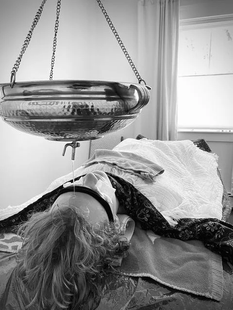 Shirodhara is received lying on a warm table, similar to Abhyanga. Warm oil is poured consistently for 20-25 minutes over the forehead and scalp. Your session. will end with a head and neck massage as well. The oil is collected and with proper care, is reused up to 3-4 times. At this time, the storage and care of the oil will be given to the client with all instructions. It is best to receive all Ayurvedic bodywork on a day that you will be able to simply rest. No solid food should be taken for 2 hours prior to receiving your treatments! All instructions will be included upon scheduling.